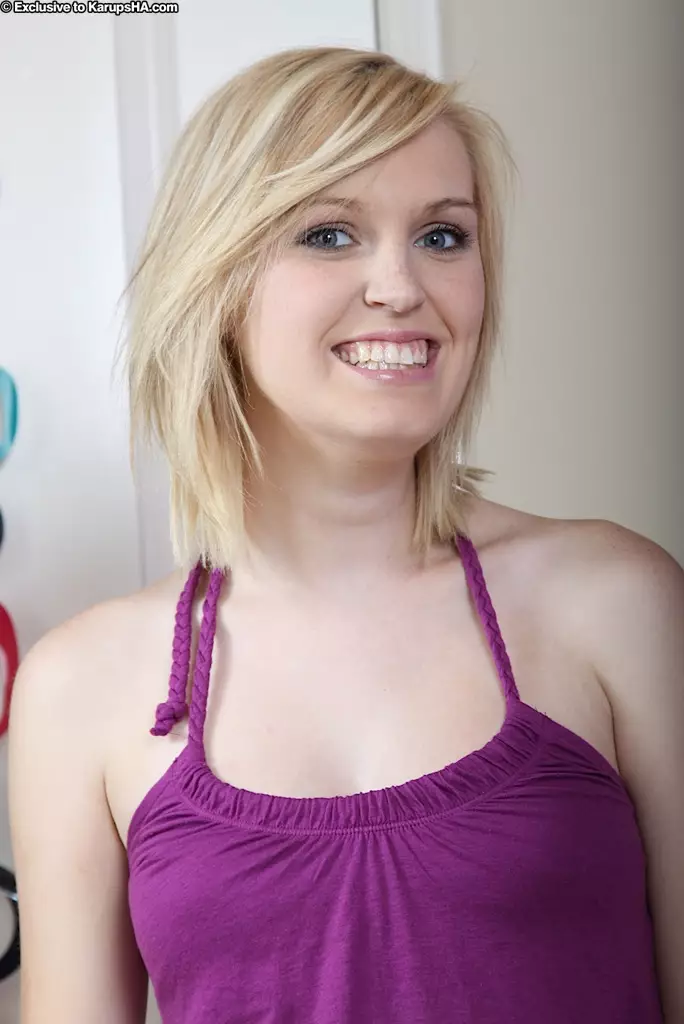 Улыбчивая сладкая блондинка Amanda Bryant с восхитительными сиськами полностью разделась чтоб показать все — Amanda Bryant