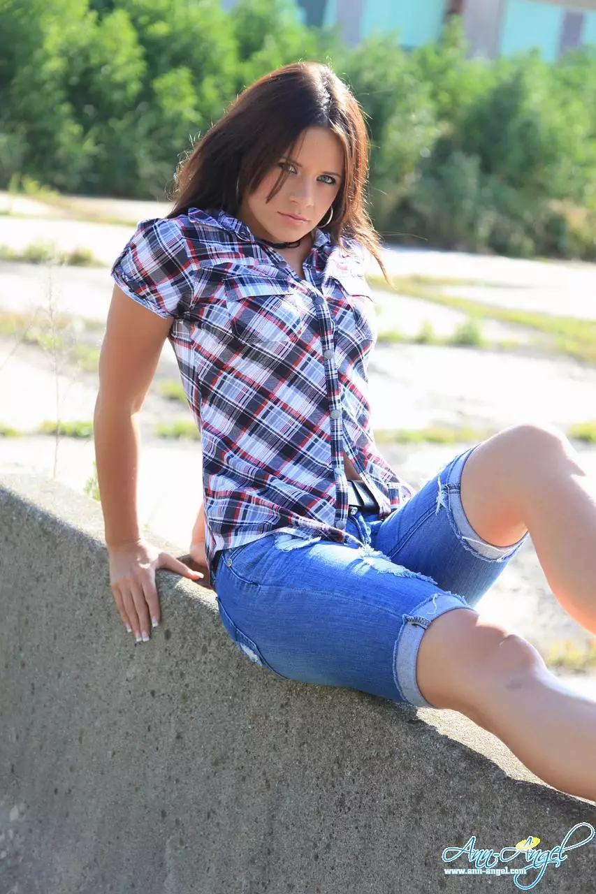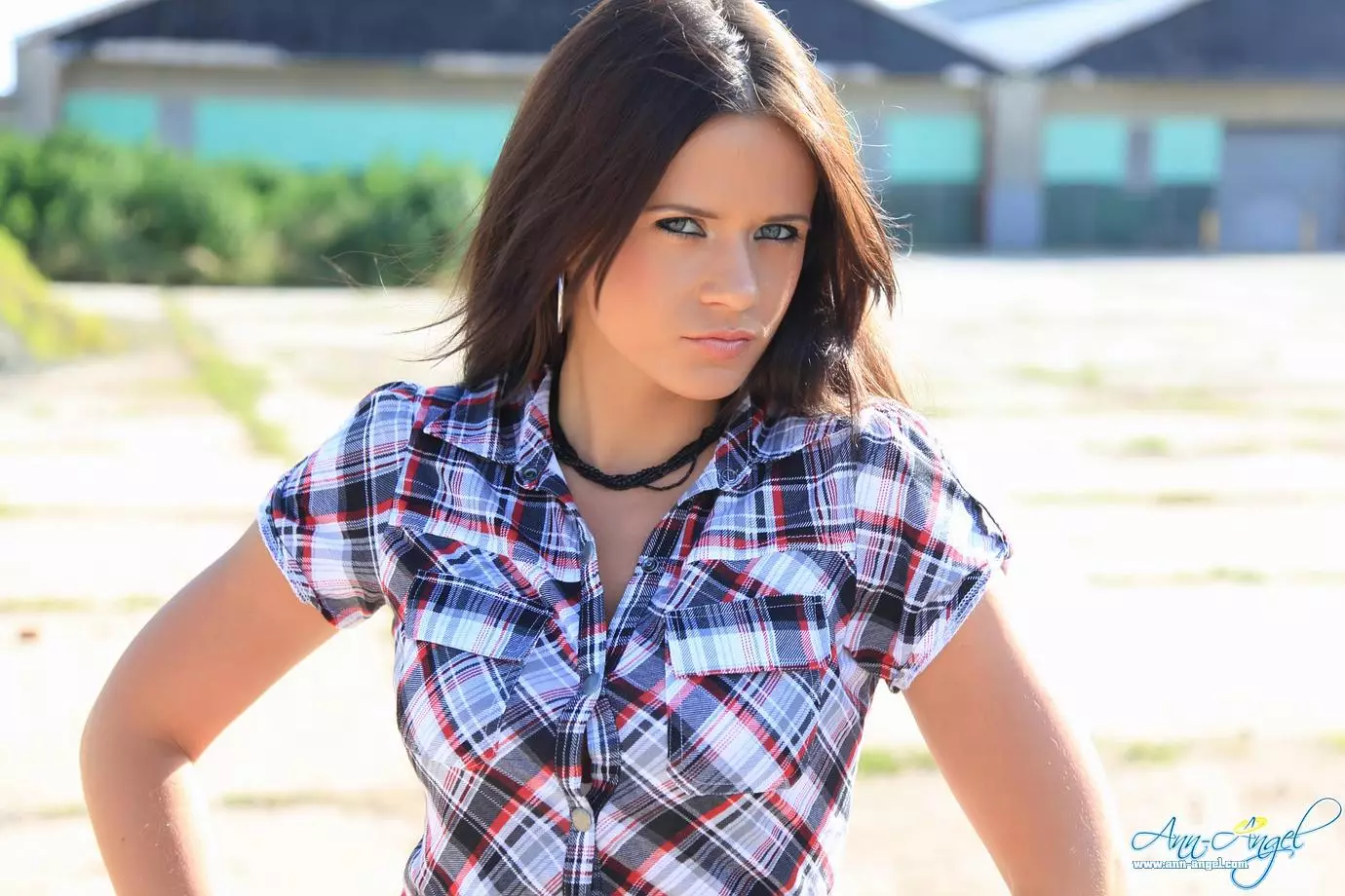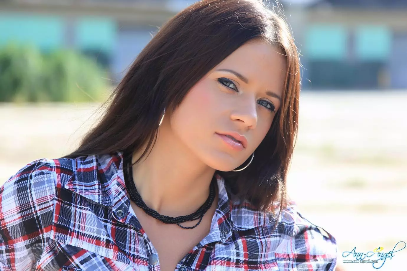 Нежная брюнетка Ann Angel позирует на природе — Ann Angel