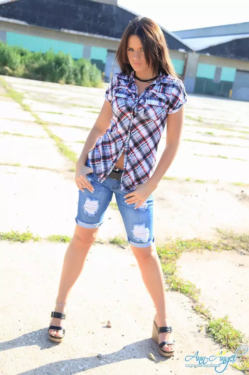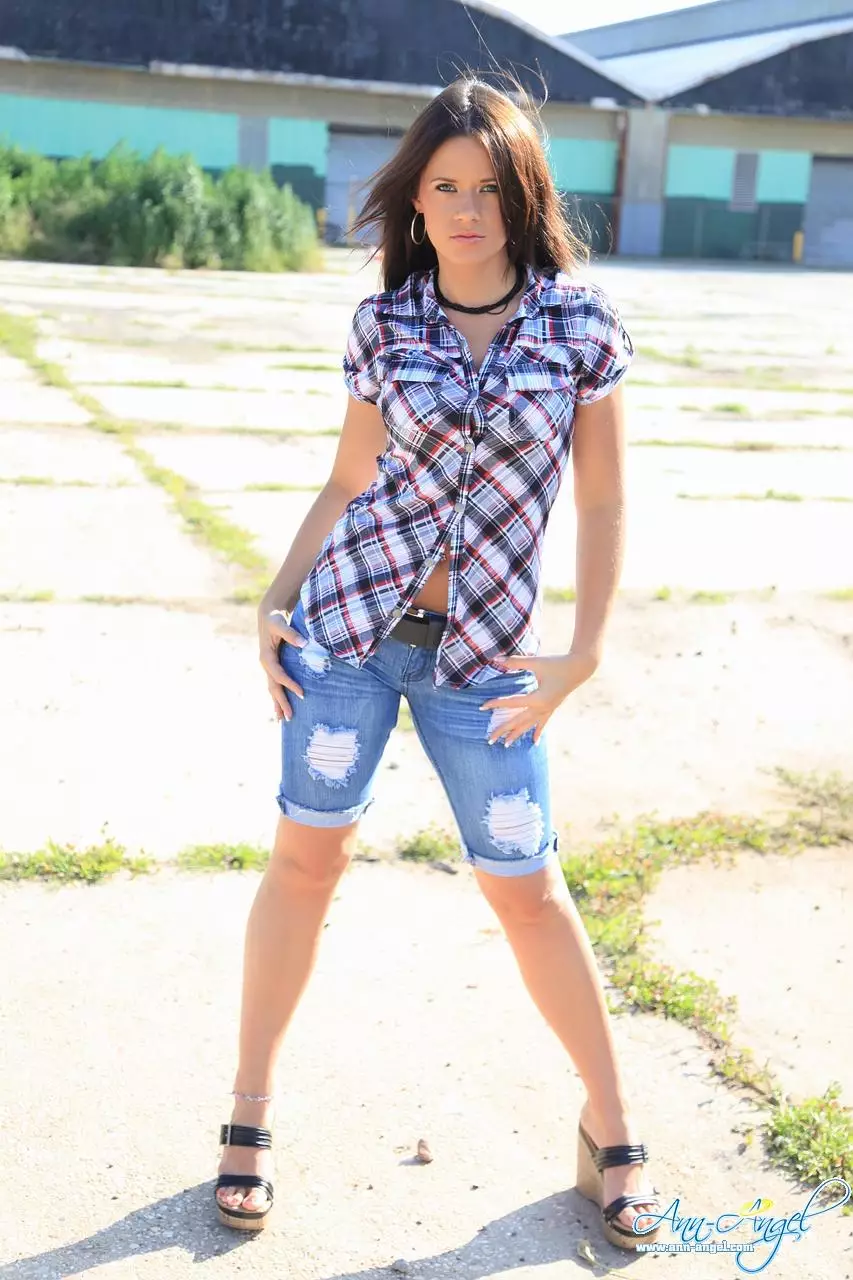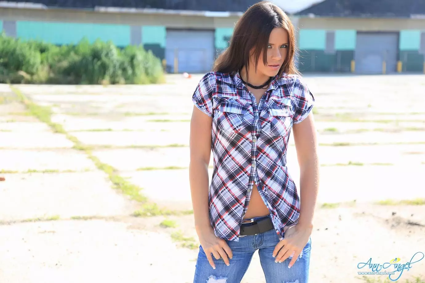 Нежная брюнетка Ann Angel позирует на природе — Ann Angel