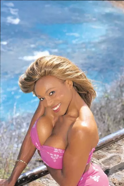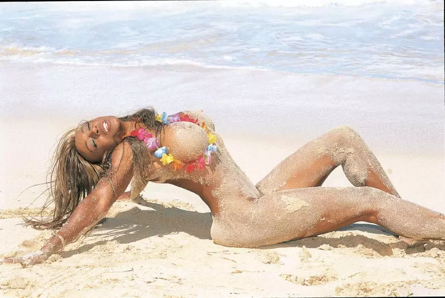 Сексуальная негритянка с большой круглой грудью Anna Amore позирует обнаженной и раздвигает ножки на пляже — Anna Amore