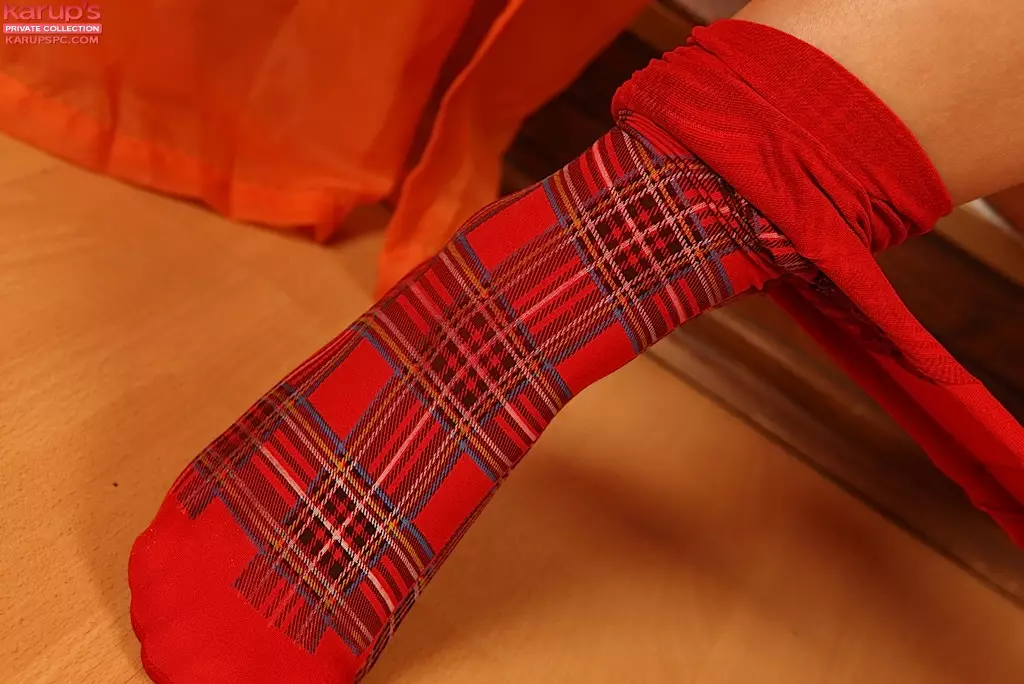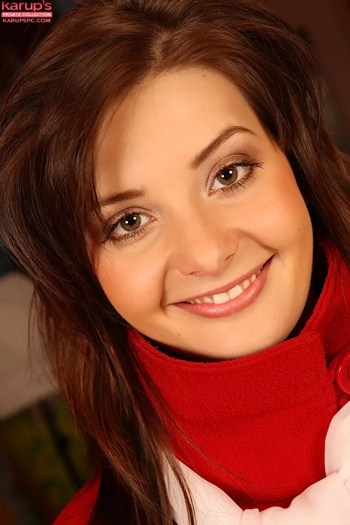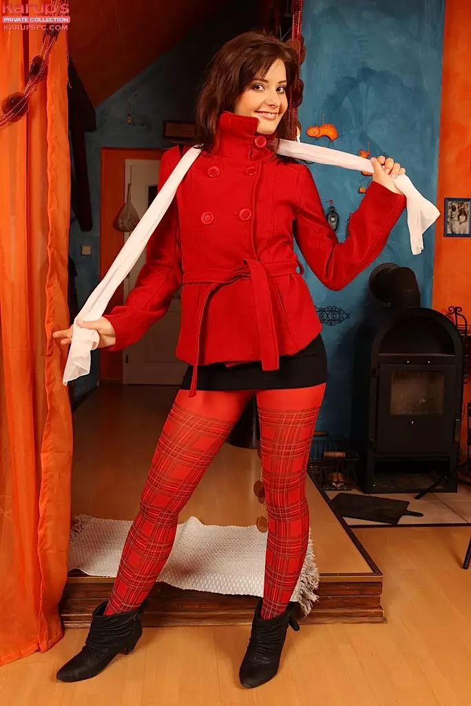 Милашка в красном Anna Tatu раздеваются и демонстрирует свою безволосую тугую киску — Anna Tatu