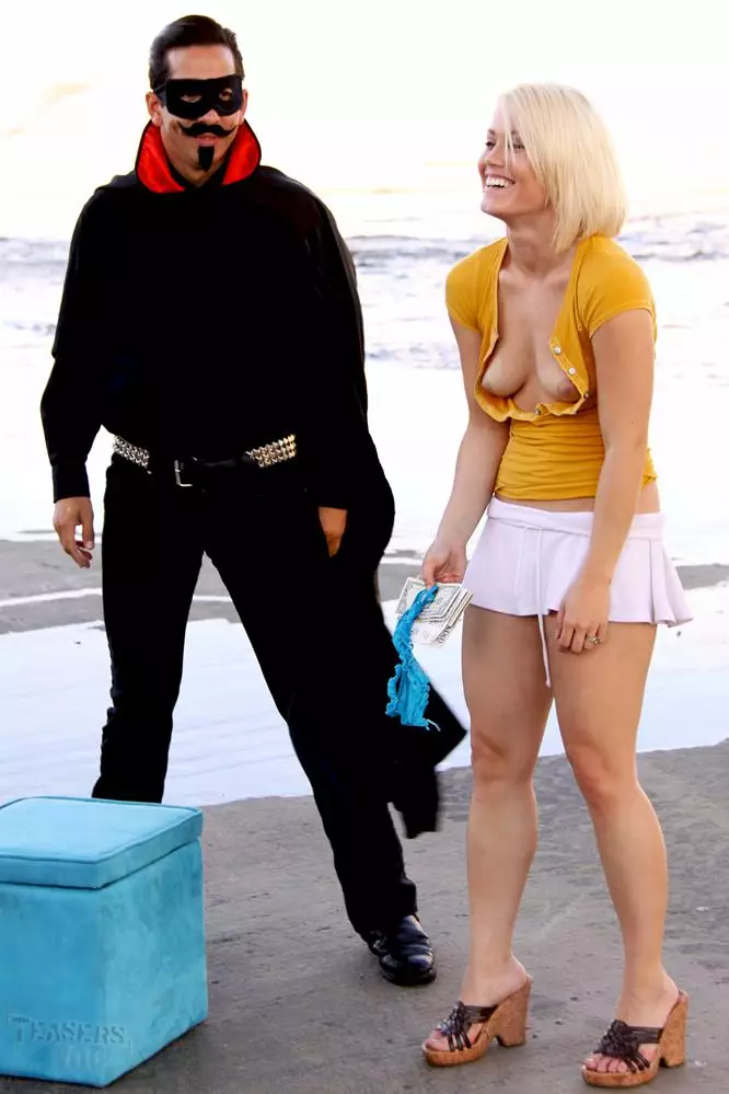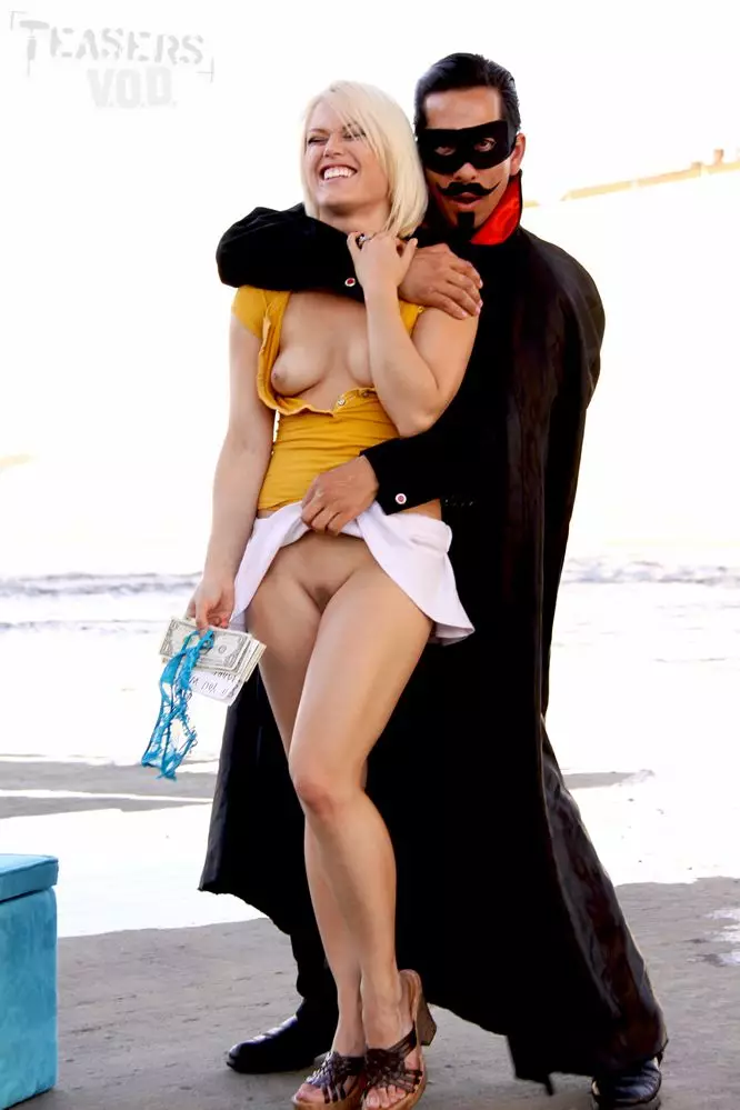 Человек в черном трахает дилдо обнаженную блондинку Ash Hollywood и заставляет ее согнуться на свежем воздухе — Ash Hollywood