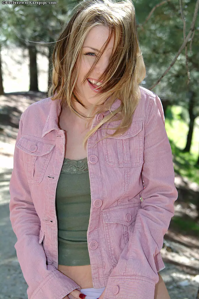 Одетая девочка Ashley Fires выставила свои титьки и киску на кассету в лесу — Ashley Fires