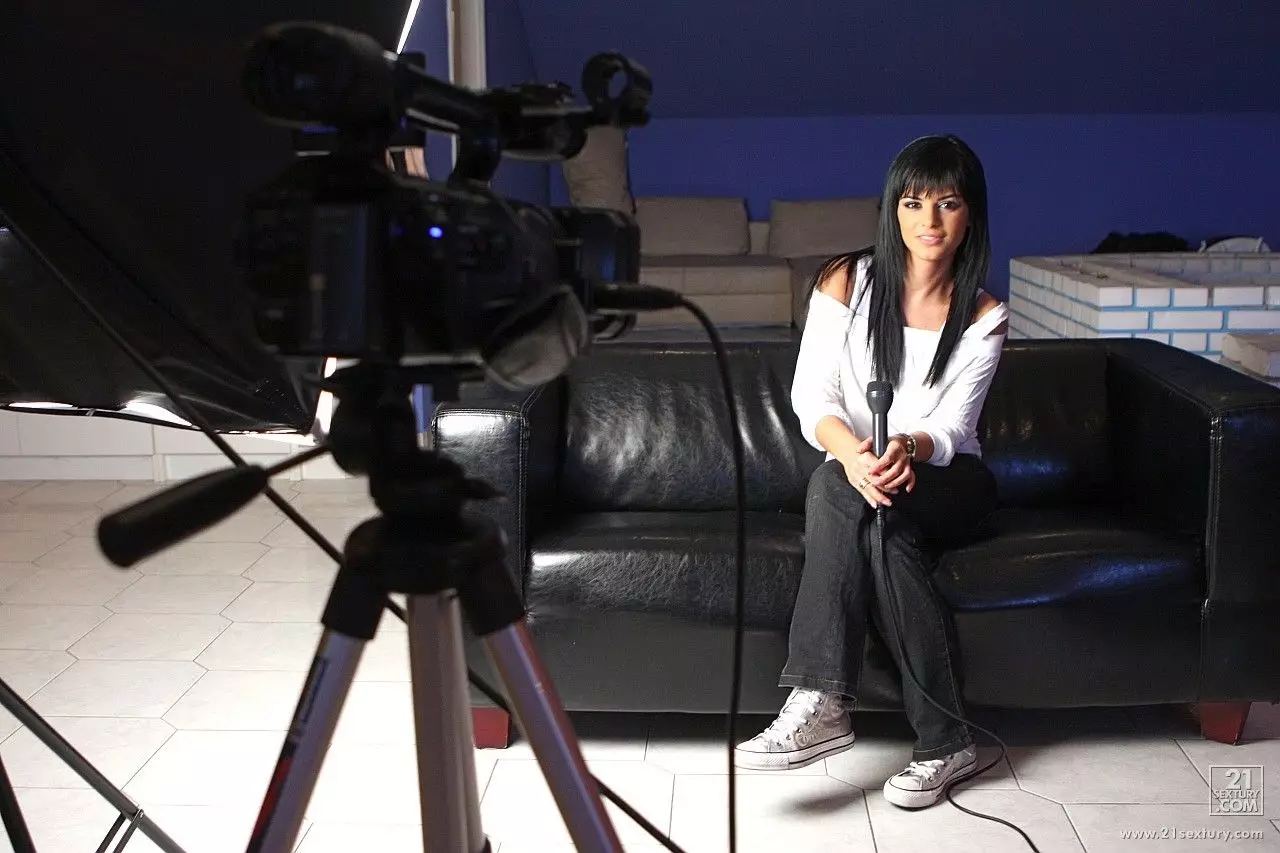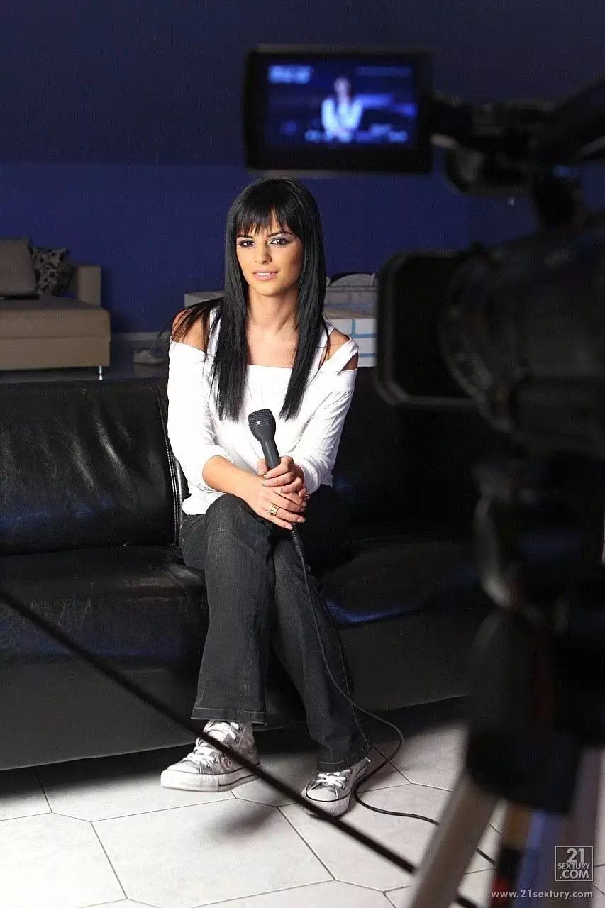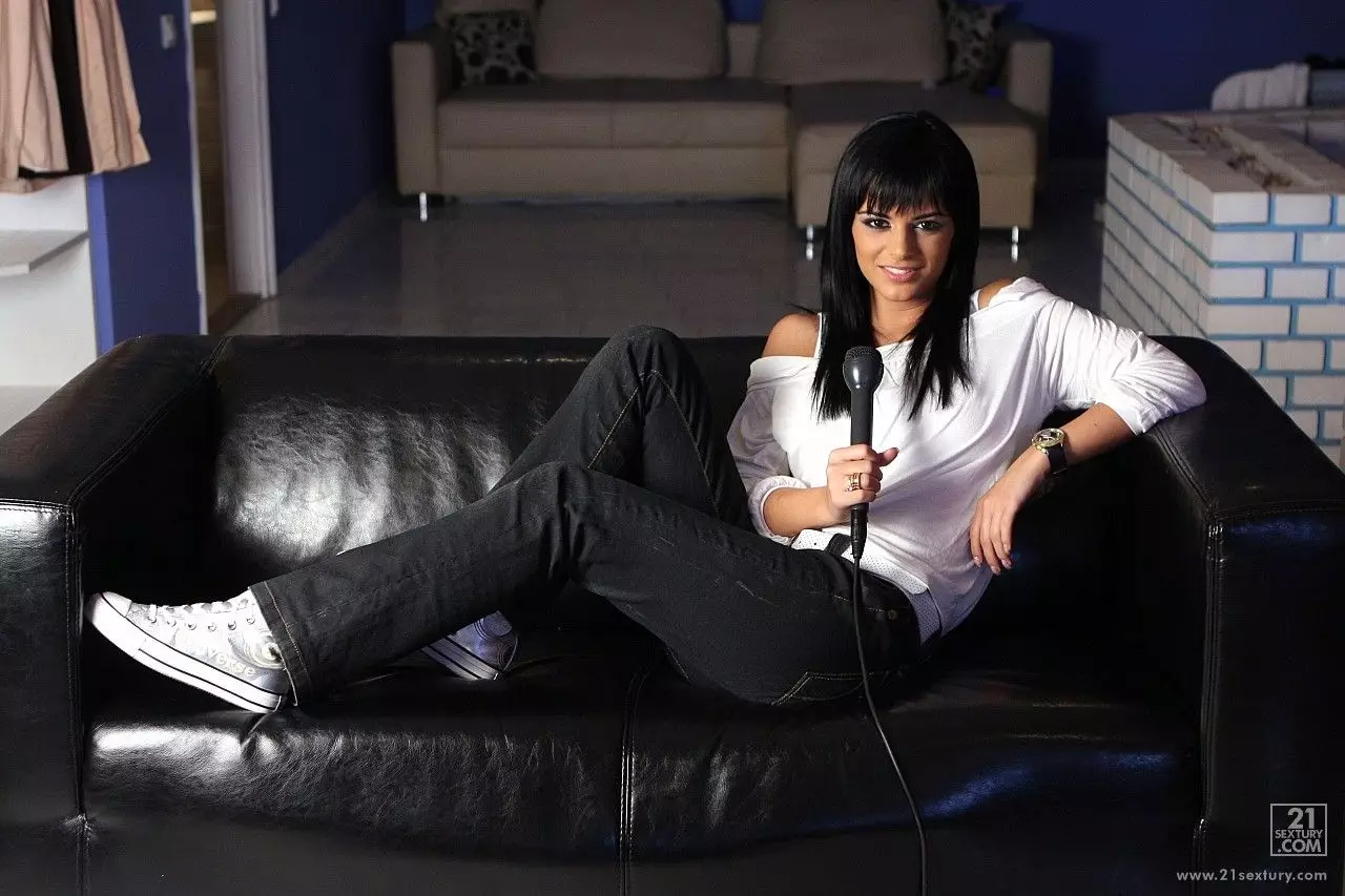 Красивая брюнетка в черном и белом Black Angelica соблазняет перед камерой — Black Angelica