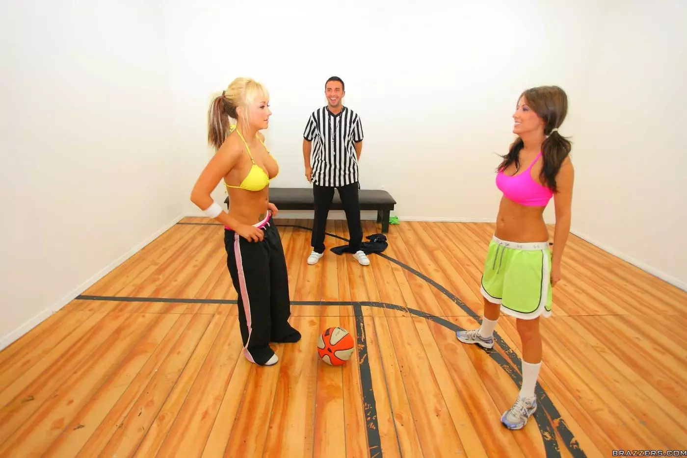 Грудастая блондинка в желтом бикини - Brandy Blair, наполняет себя большим членом после игры в баскетбол — Brandy Blair