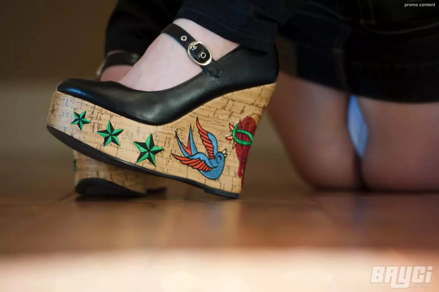 Брюнетка Bryci с замечательными гигантскими грудями сбрасывает свои миниатюрные белые трусики — Bryci