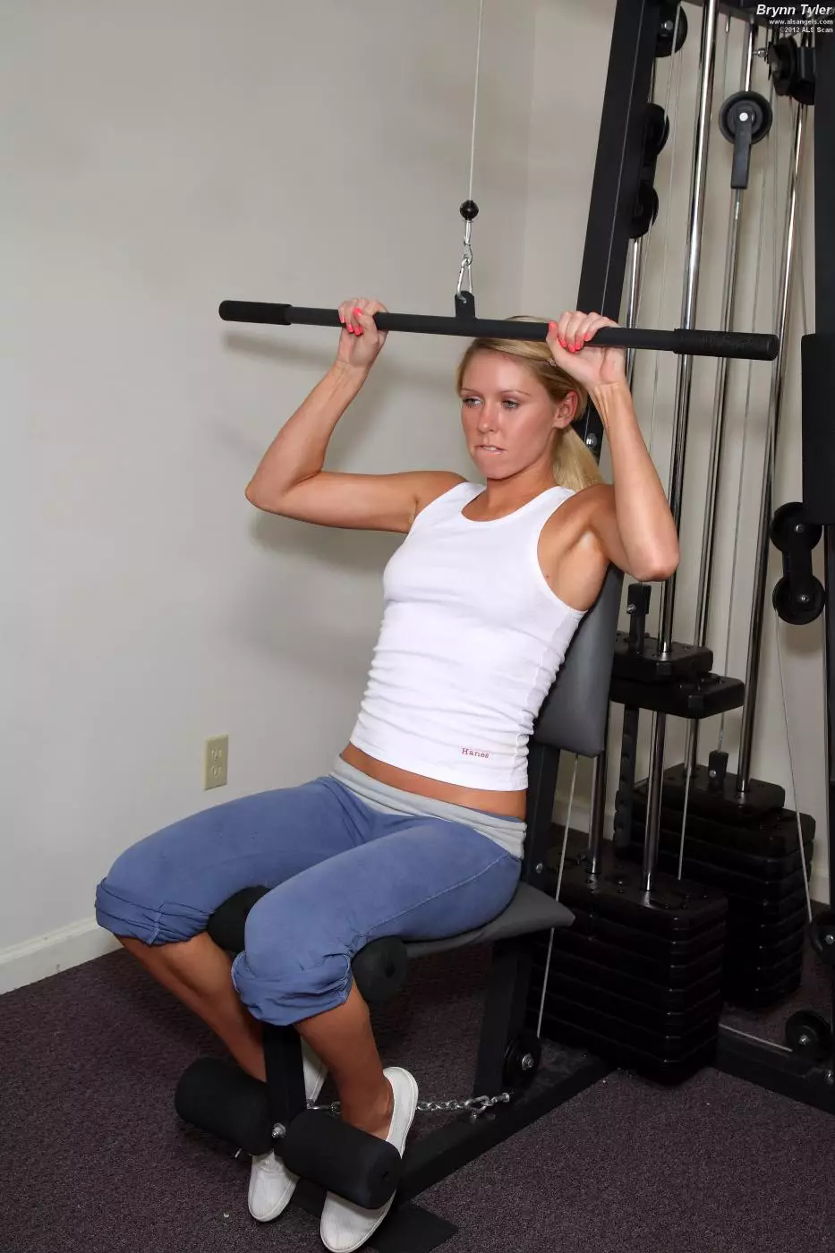 Блондиночка Brynn Tyler остается одна в спортзале и трахает свою киску игрушкой — Brynn Tyler