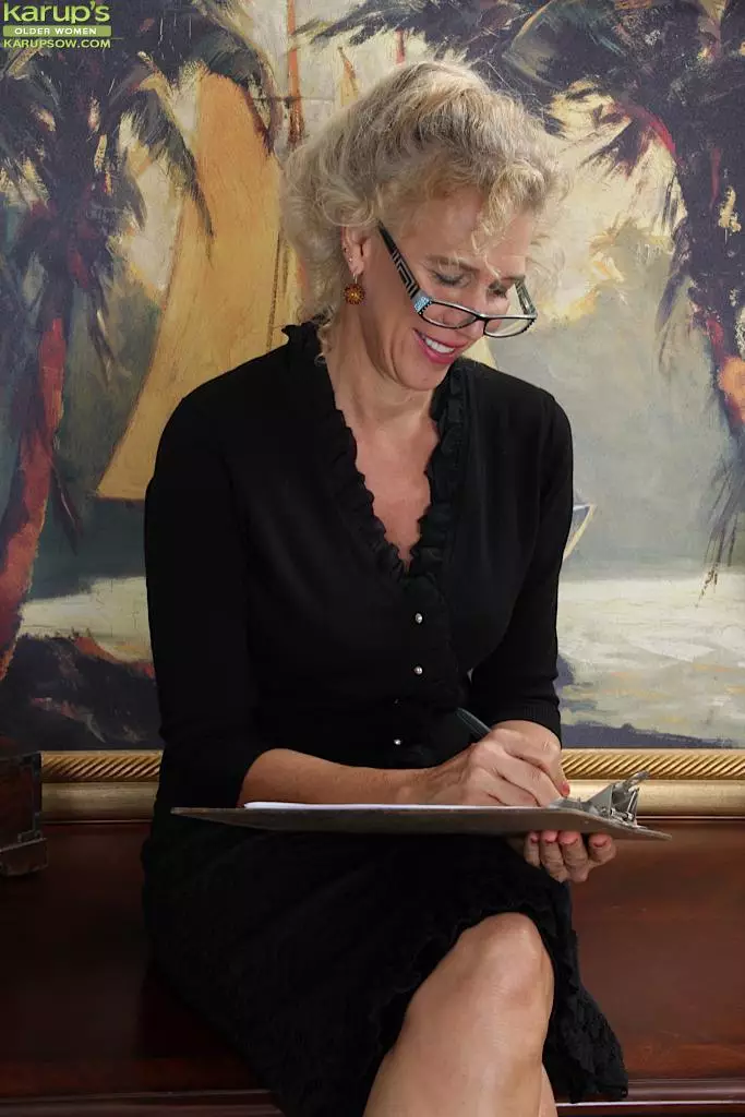 Грязная старая блондинка-мамочка Cally Jo снимает шлюхастую одежду и играет с собой — Cally Jo