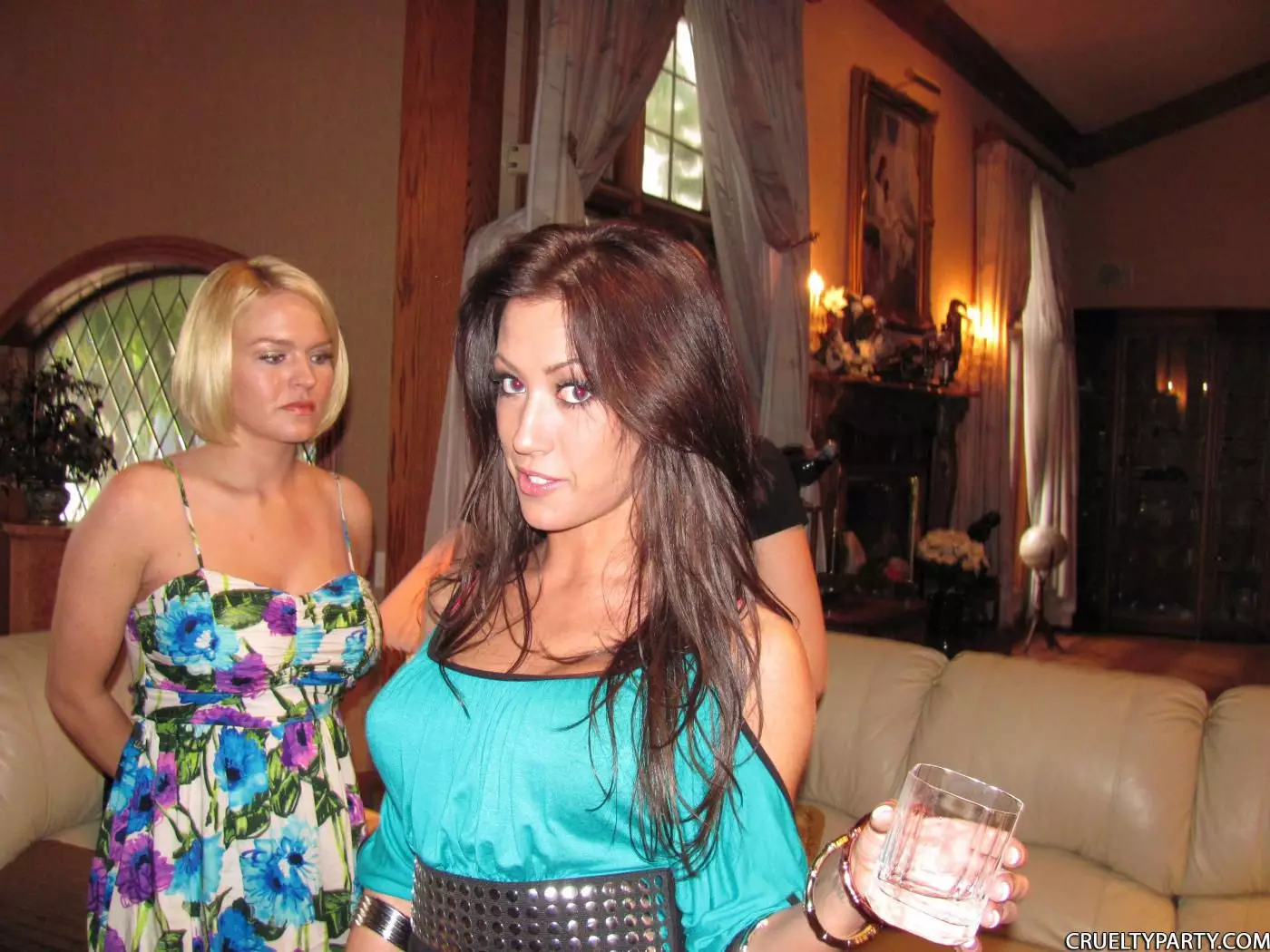 Сексуальная пышногрудая брюнетка Capri Cavalli со своей подружкой прильнули к телу парня и сосут у него — Capri Cavalli
