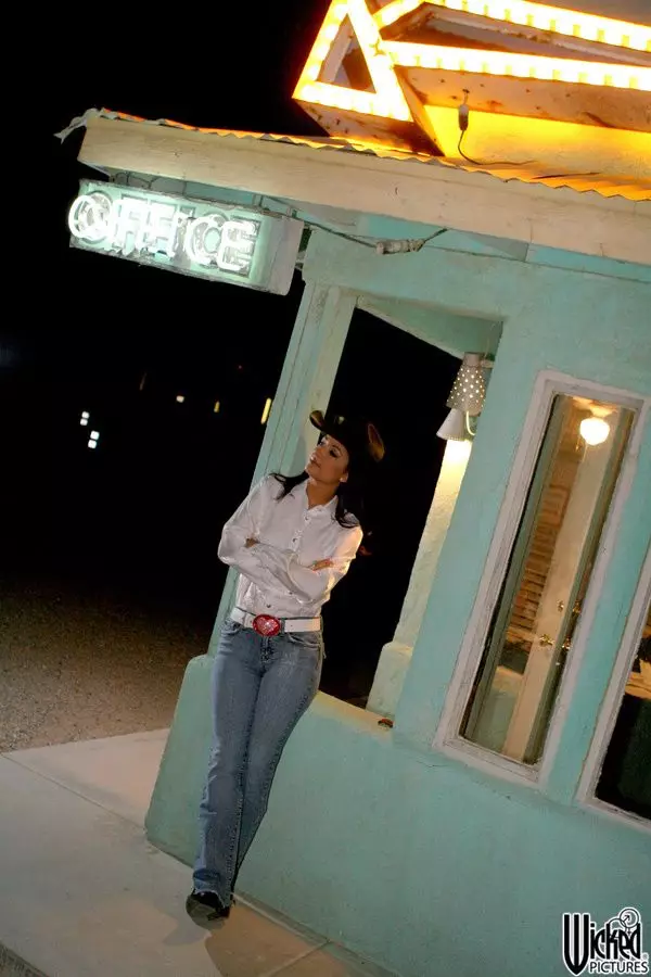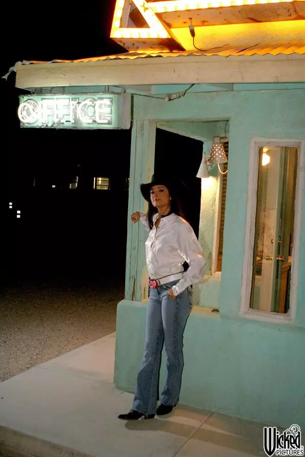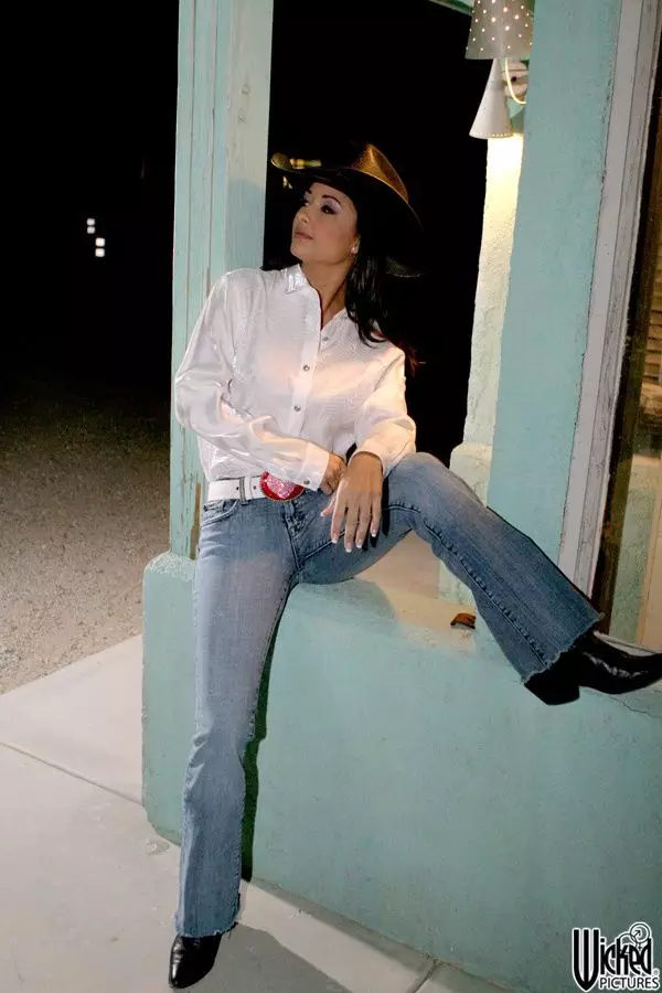 Возбуждающие позы и соблазнительный стриптиз от похотливой брюнетки-ковбойши Carmen Hart — Carmen Hart