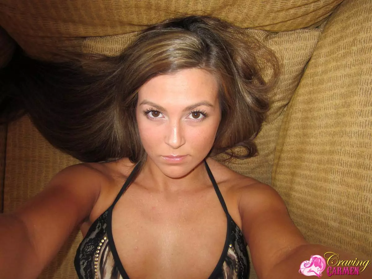 Свежая малышка в бикини с карими глазами Craving Carmen демонстрирует полностью выбритую пухлую киску — Craving Carmen