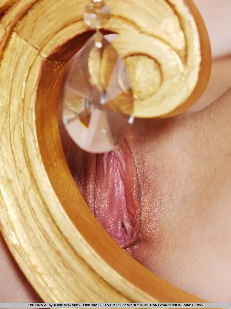 Девочка с крохотной попкой Cristina A с бритой киской снимает свои красивые трусики — Cristina A