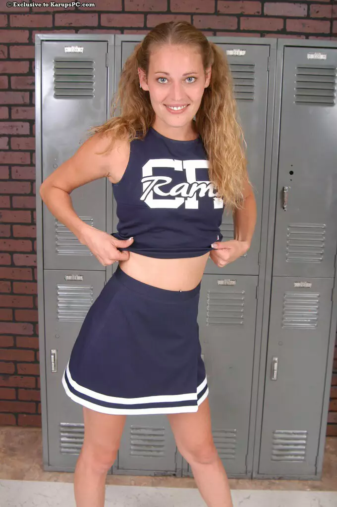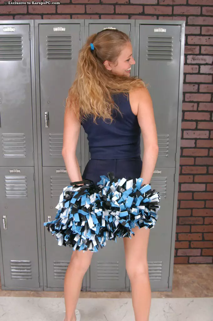 Кудрявая стройняшка Daisy May снимает голубую униформу и белое белье в раздевалке — Daisy May
