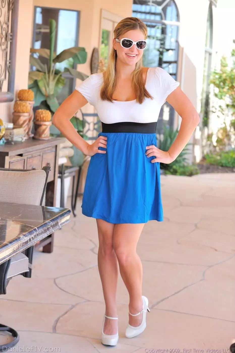 Сучка с большими сиськами Danielle FTV снимает свое бело-синее платье и показывает свою раскрытую киску крупным планом — Danielle FTV D / Danielle FTV |