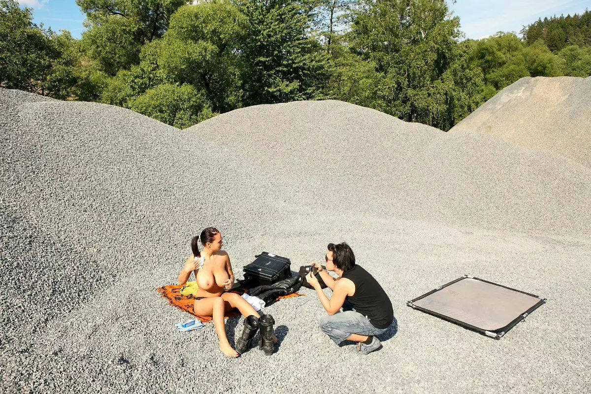 Грудастая малышка с тату Dominno готова позировать обнаженной в жаркий летний день — Dominno