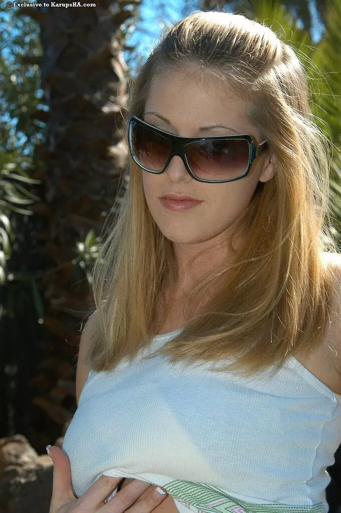 Сексуальная детка в очках Ebin Emerson показывает сочную грудь и гладкую киску под солнцем — Ebin Emerson