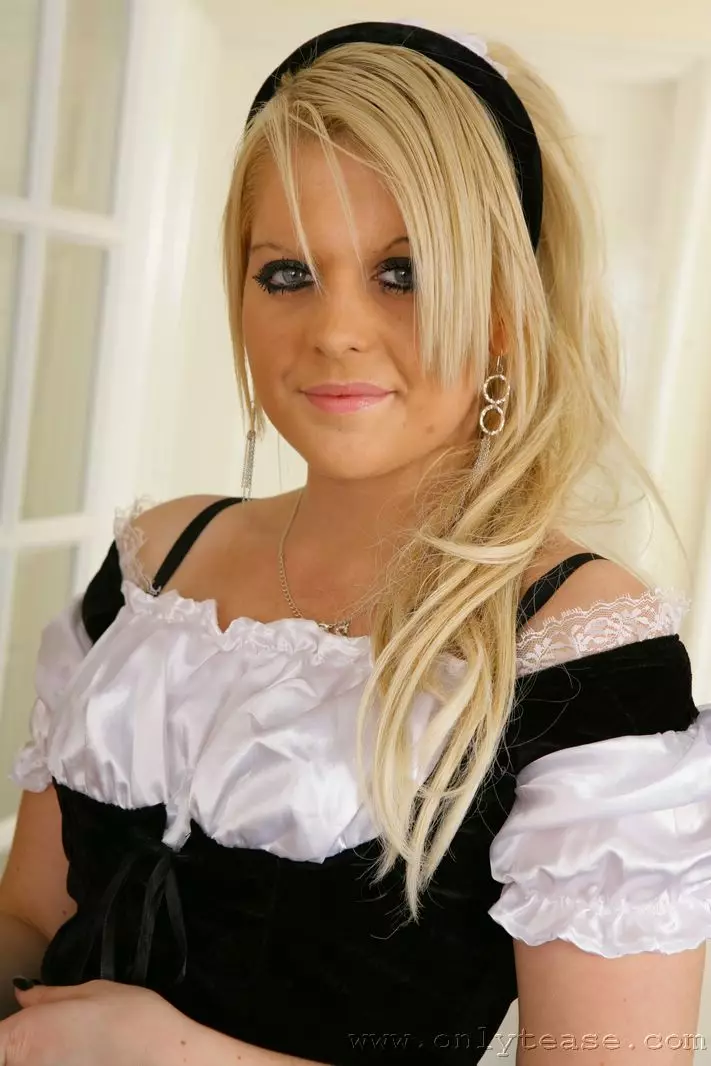 Служанка в сексуальных чулках Eden Onlytease соблазняет стриптизом, протирая пыль — Eden Onlytease