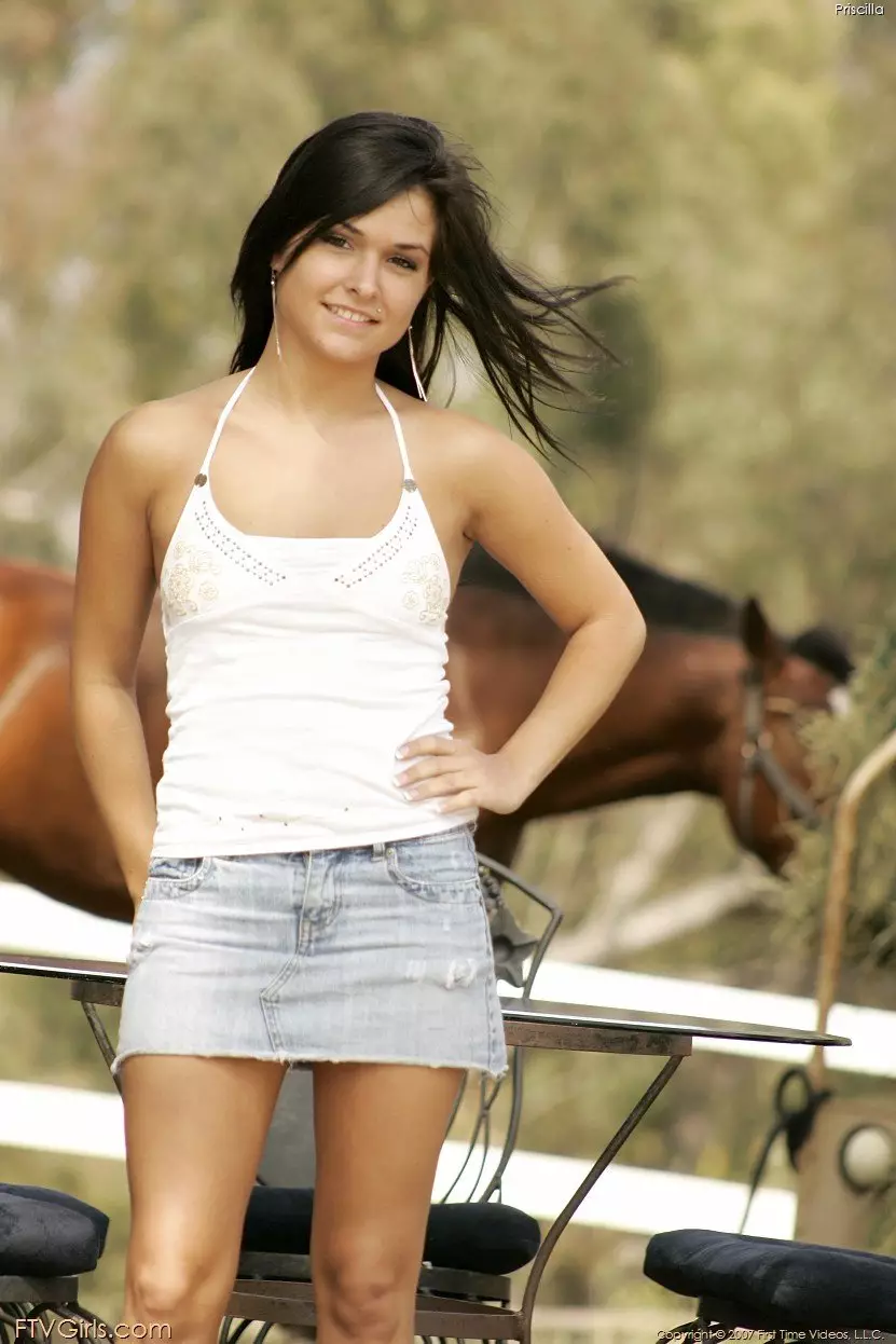 Сексуальная кукла Eden Petty в джинсовой юбке, показывает стриптиз на ферме — Eden Petty