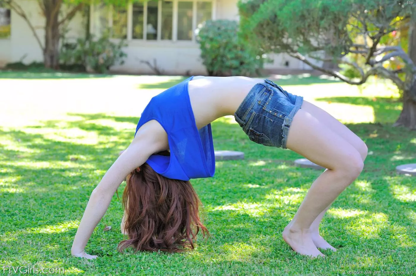 Милая рыжая детка с длинными волосами Elle Alexandra показывает полностью гладкую киску на природе — Elle Alexandra