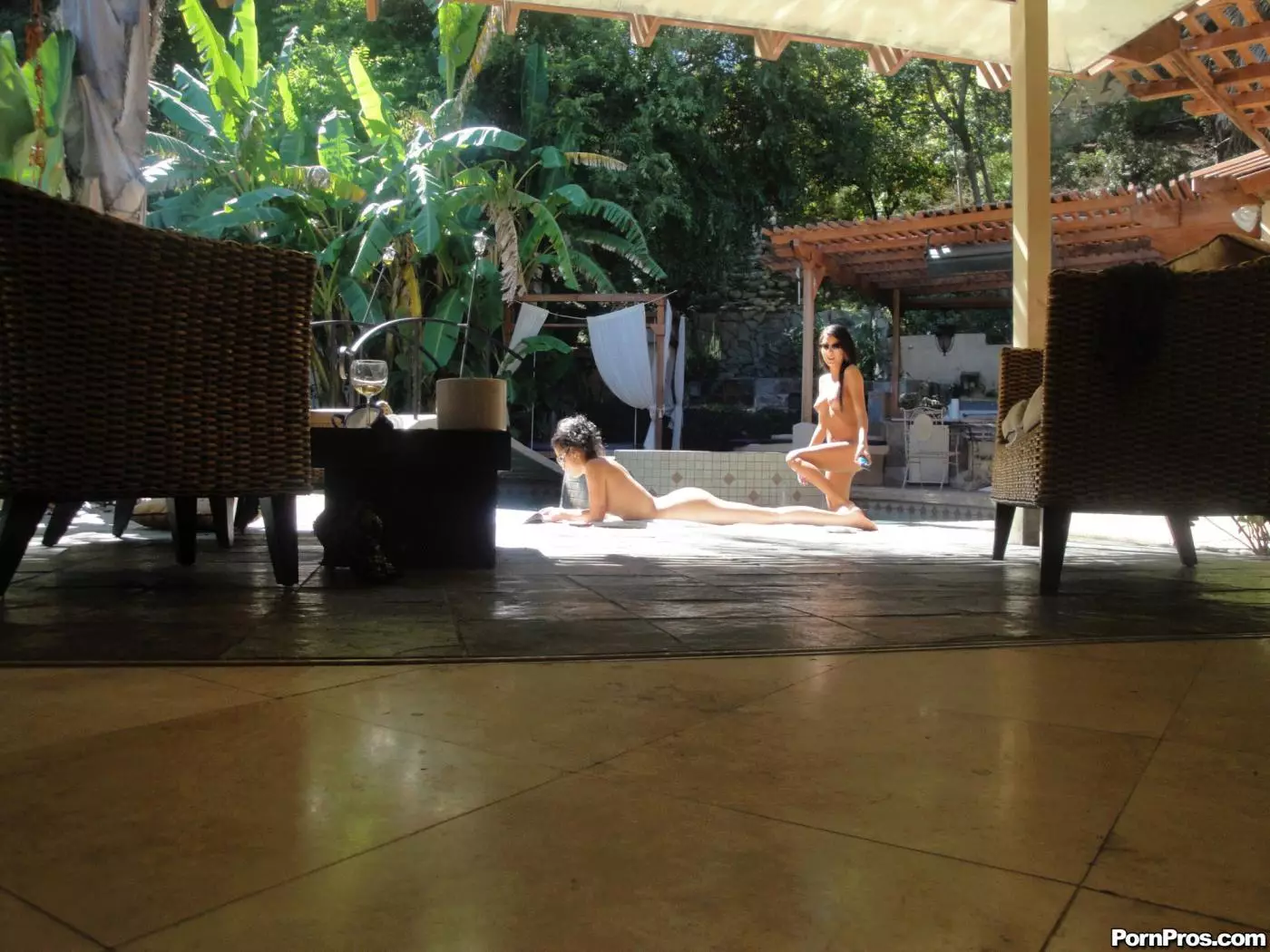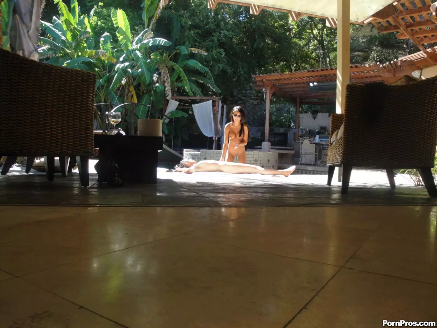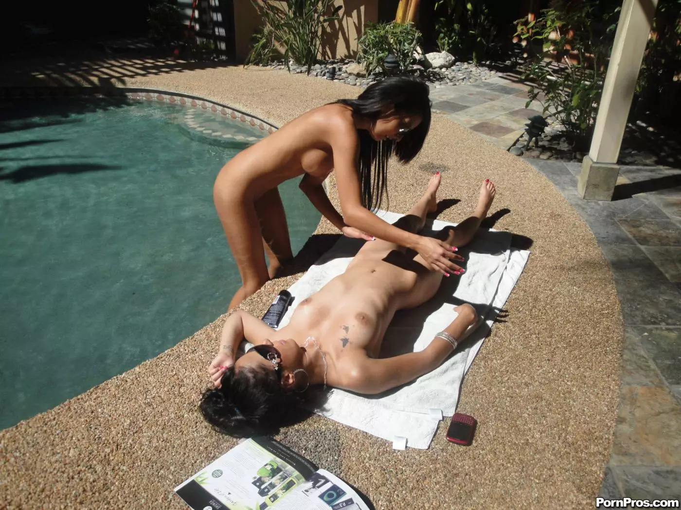 Очаровательная прилежная брюнеточка Eva Ellington ласкает тело своей подруги у бассейна — Eva Ellington