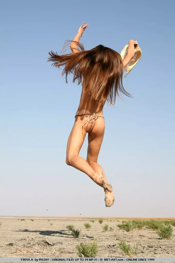 Длинноногая, стройная молоденькая милашка Freya A позирует обнаженной в пустыне — Freya A