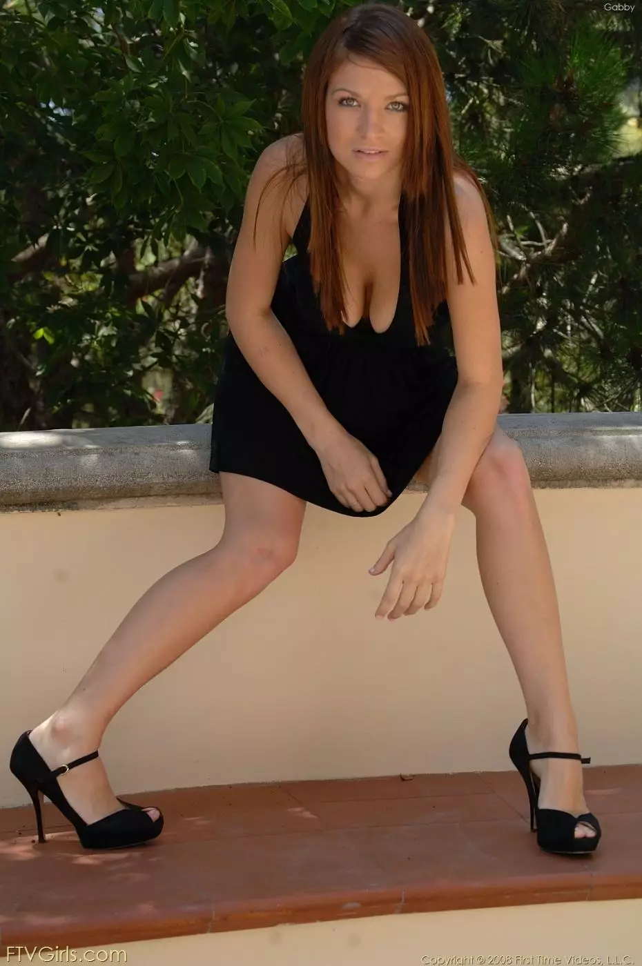 Грудастая милашка Gabby FTV снимает черное платье на улице и двигает зеленой игрушкой в своей аккуратной киске — Gabby FTV