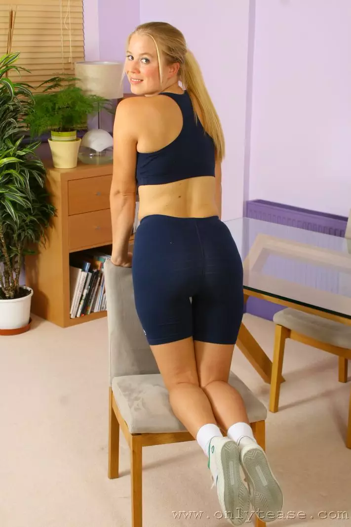Спортивная блондинка с невероятно большой натуральной грудью Gabriella T полностью раздевается — Gabriella T