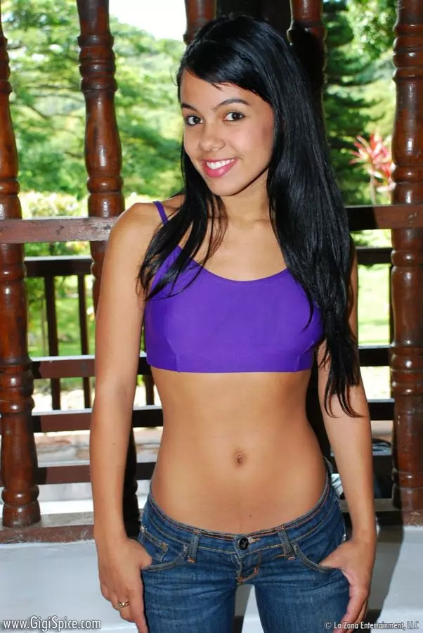 Латинка в круглой попкой Gigi Spice снимает свои узкие облегающие джинсы и трусики танго — Gigi Spice
