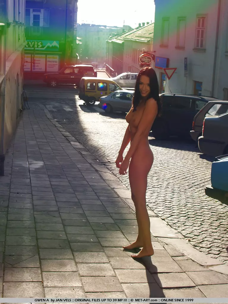 Игривая брюнетка Gwen A чувствует себя свободно на улице, когда катается на велосипеде обнаженной — Gwen A
