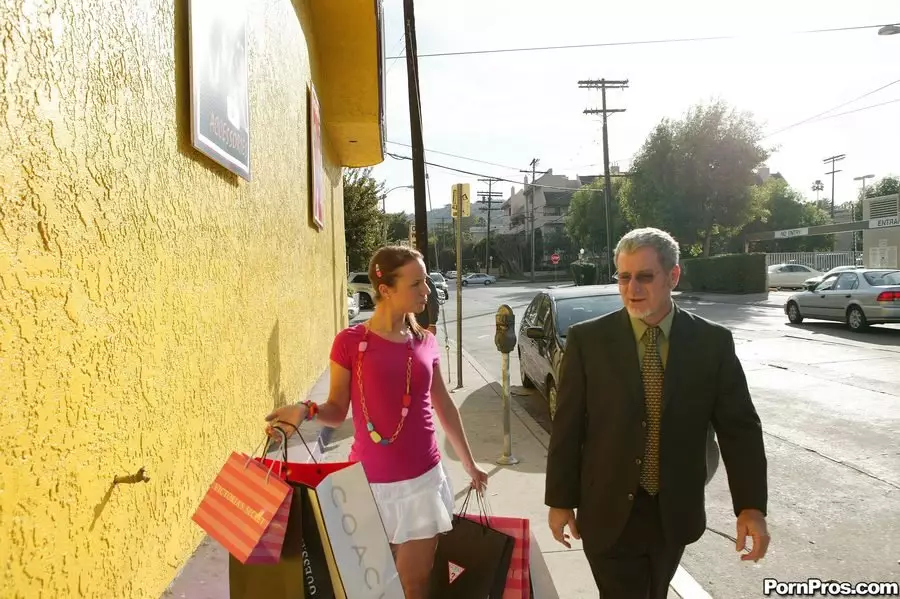 Девочка-подросток в короткой белой юбке и розовой майке Hannah West знакомится и трахается со зрелым мужиком — Hannah West