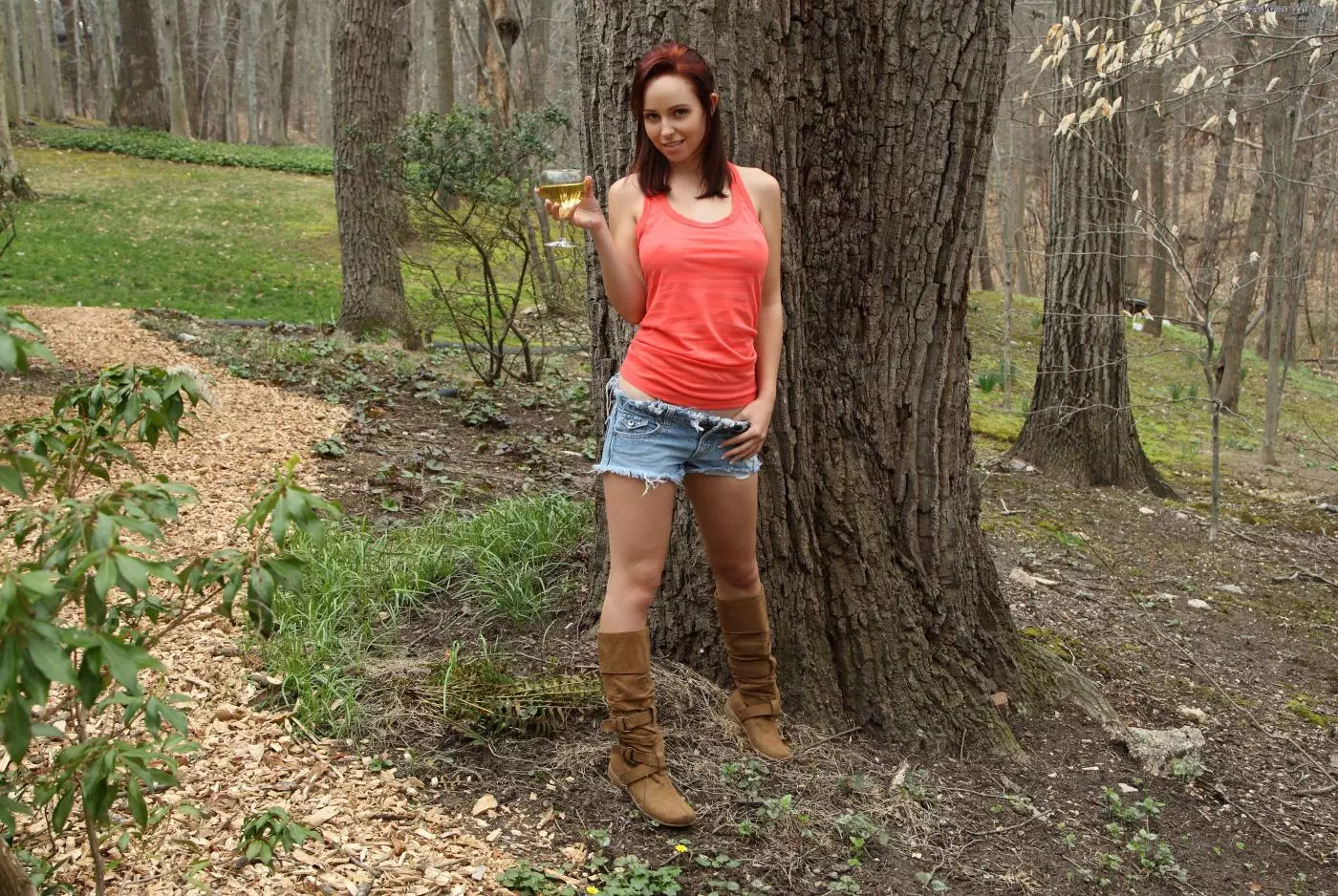 Рыжеволосая малолетка Hayden Winters одна в лесу обнажена и ерзает на стержне — Hayden Winters