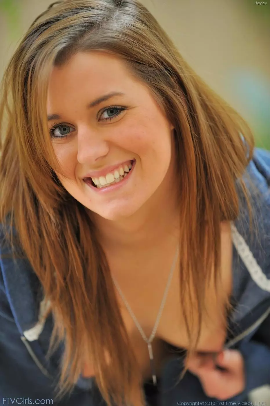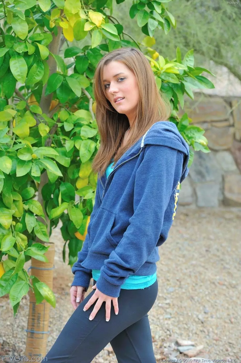 Улыбчивая шатенка Hayley Hanes обнажается и показывает свои интимные части тела на улице — Hayley Hanes
