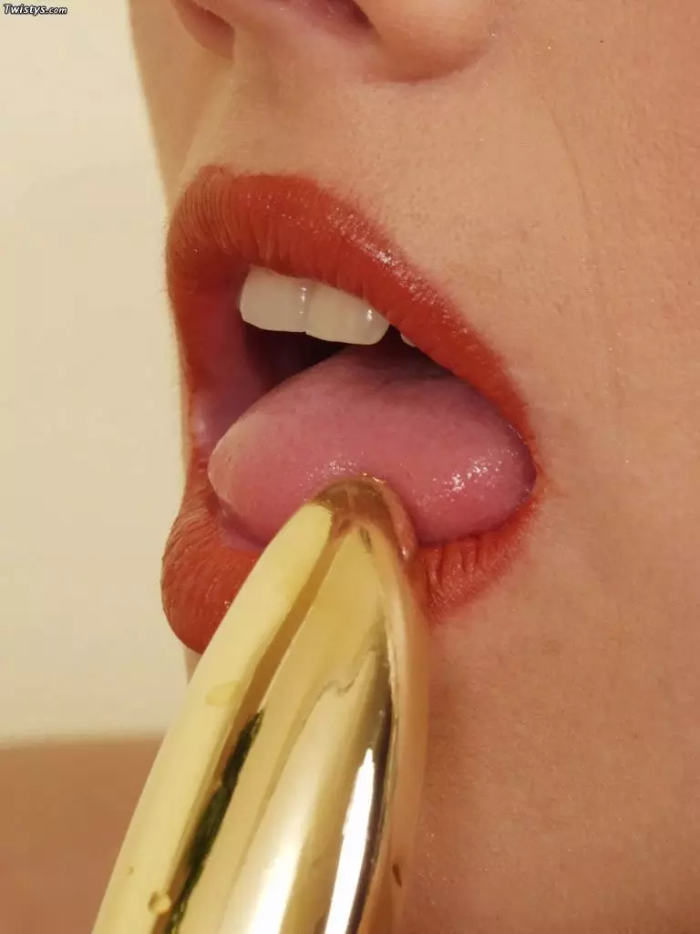 Знойная крошка с маленькой грудью Holly Twistys крупным планом ласкает свою розовую киску золотым дилдо — Holly Twistys