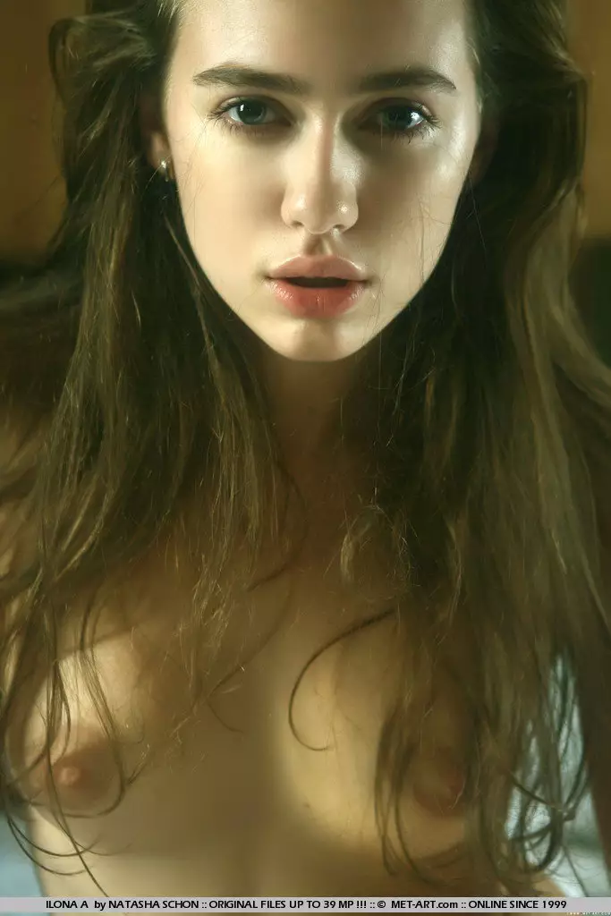 Шатенка Ilona A с обнаженной грудью демонстрирует себя в спальне — Ilona A