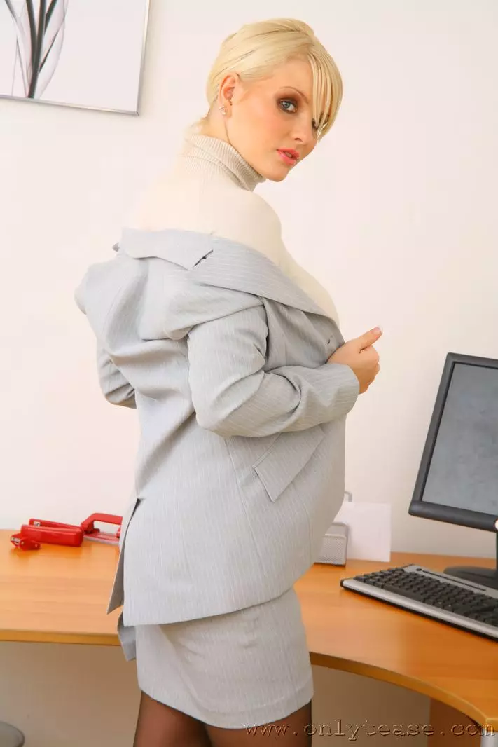 Секретарша в чулках In Bed With Faith снимает офисную одежду и показывает огромные сиськи — In Bed With Faith