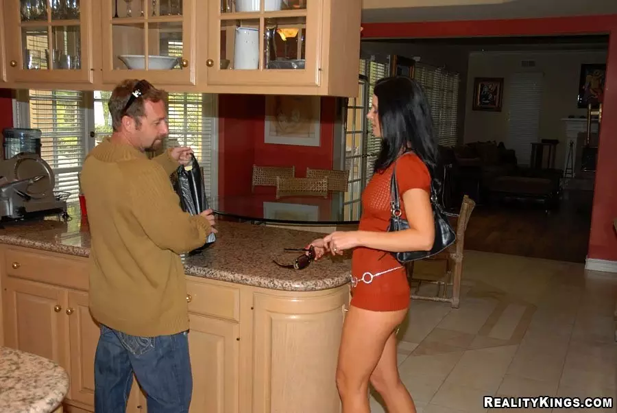 Сексапильная мамаша India Summer в красном платье и черных трусиках трахается после бокала вина — India Summer