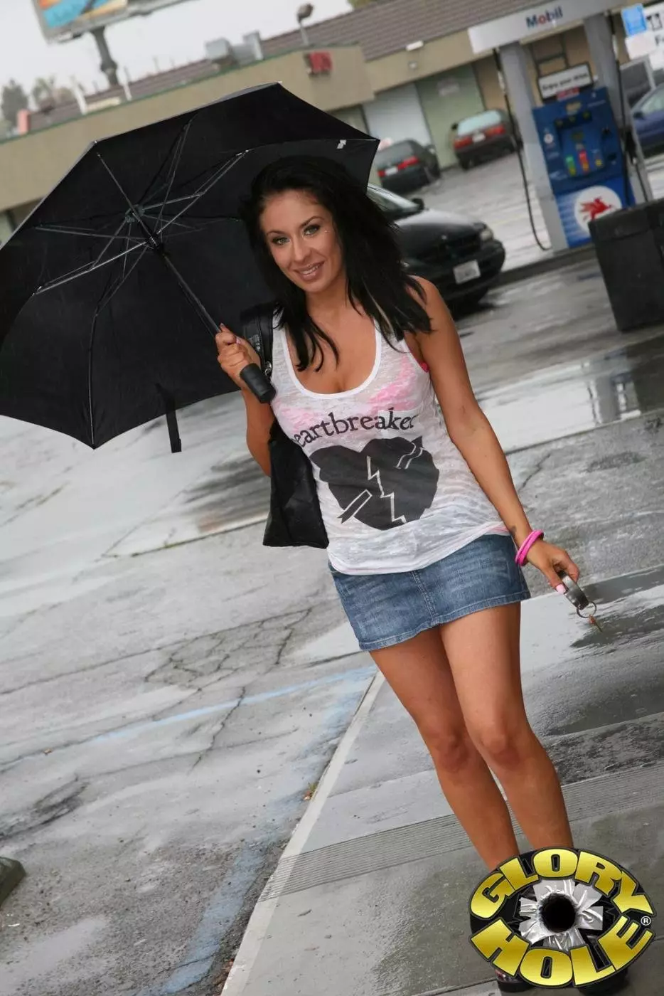 Сексуальная брюнетка Isis Monroe трахается с черным членом через дыру в кабине общественного туалета на заправке — Isis Monroe