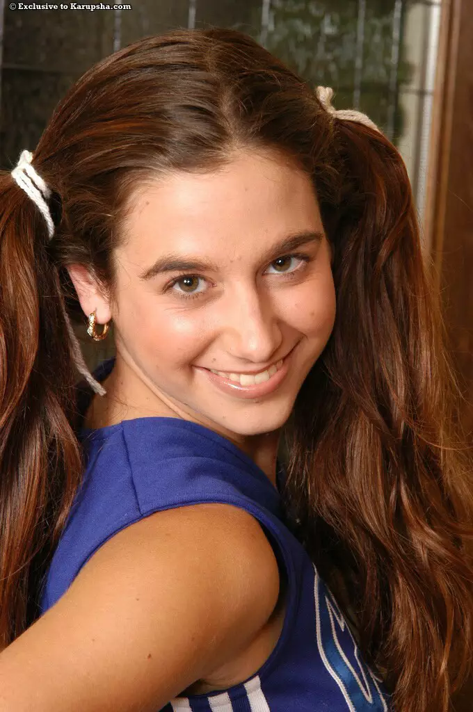 Стройная черлидерша с косичками Jackie Ashe в голубой униформе не может удержаться чтоб не показать свою сладенькую дырочку — Jackie Ashe