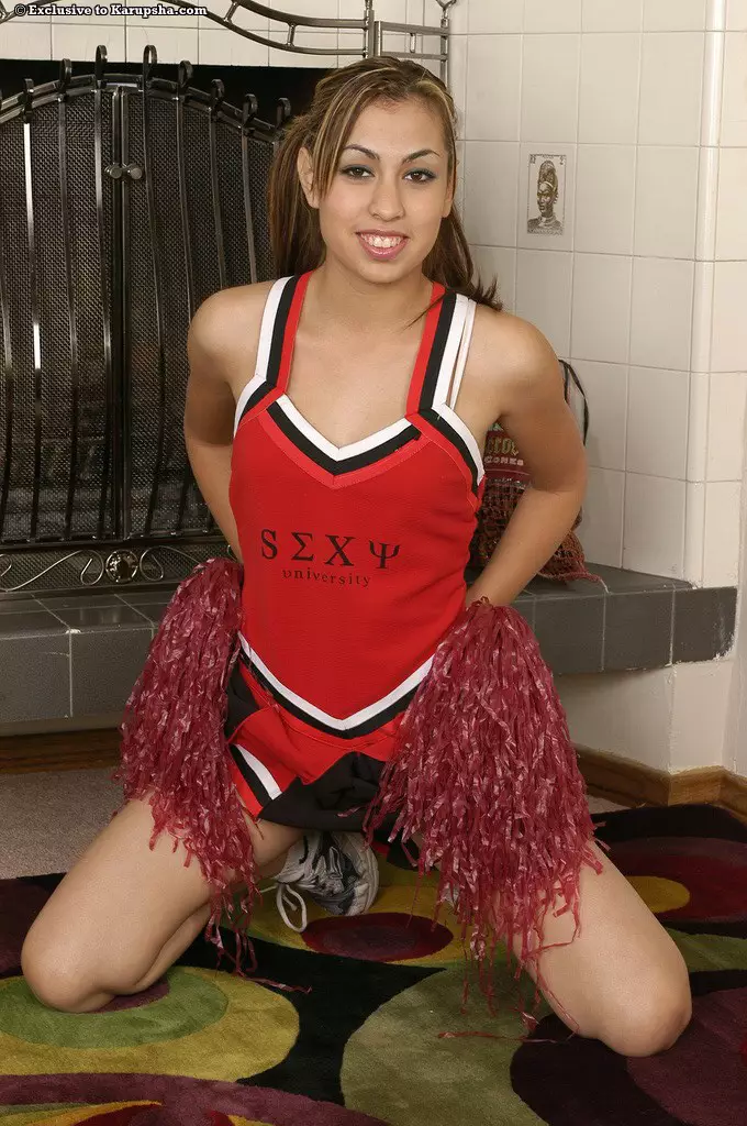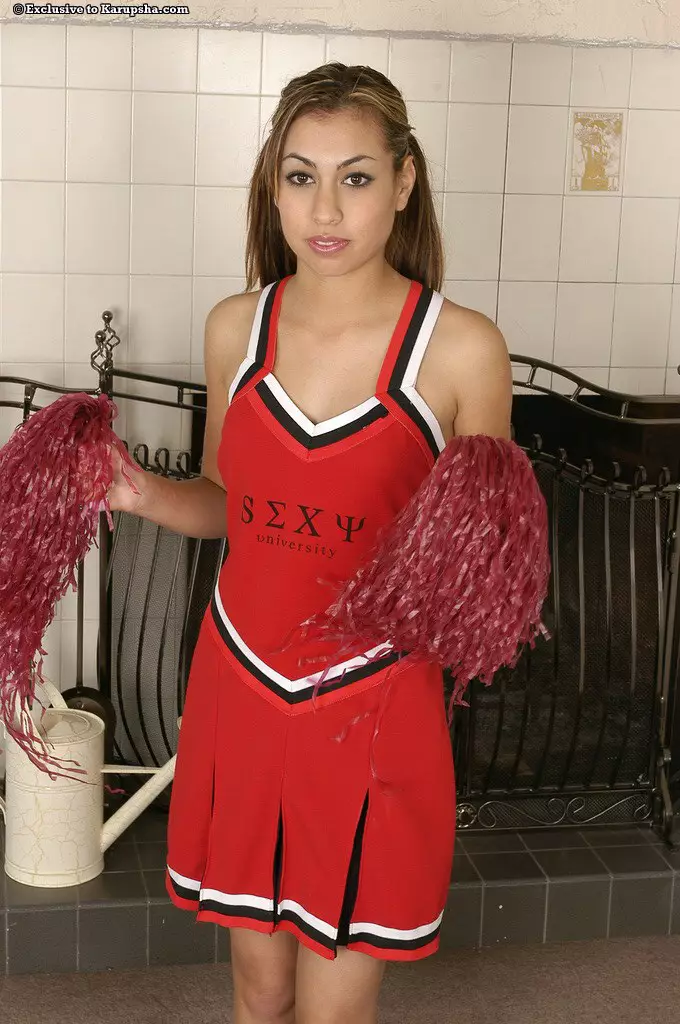 Маленькая латинская милашка Jackie Diaz снимает красную униформу и белые трусики — Jackie Diaz