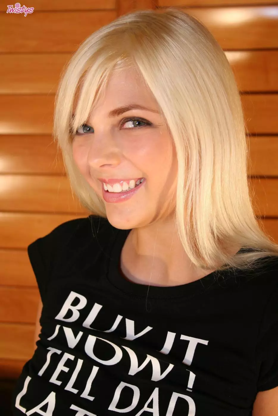 Блондинка с выбритой киской Jana Jordan снимает шорты и трусики чтобы поиграть с стеклянным инструментом — Jana Jordan