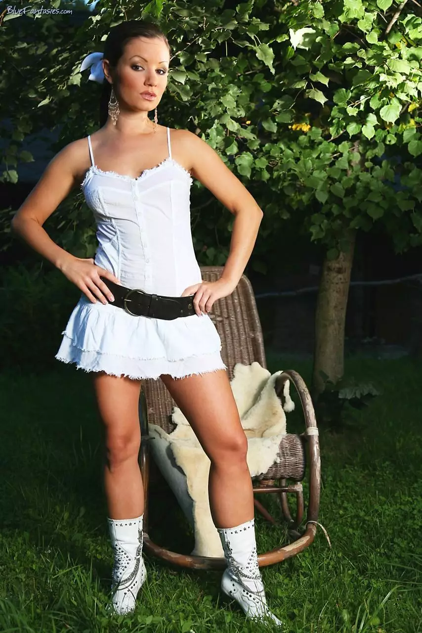 Брюнетка Jana Mrazkova снимает одежду в саду и мастурбирует киску только в кожаном ремне — Jana Mrazkova