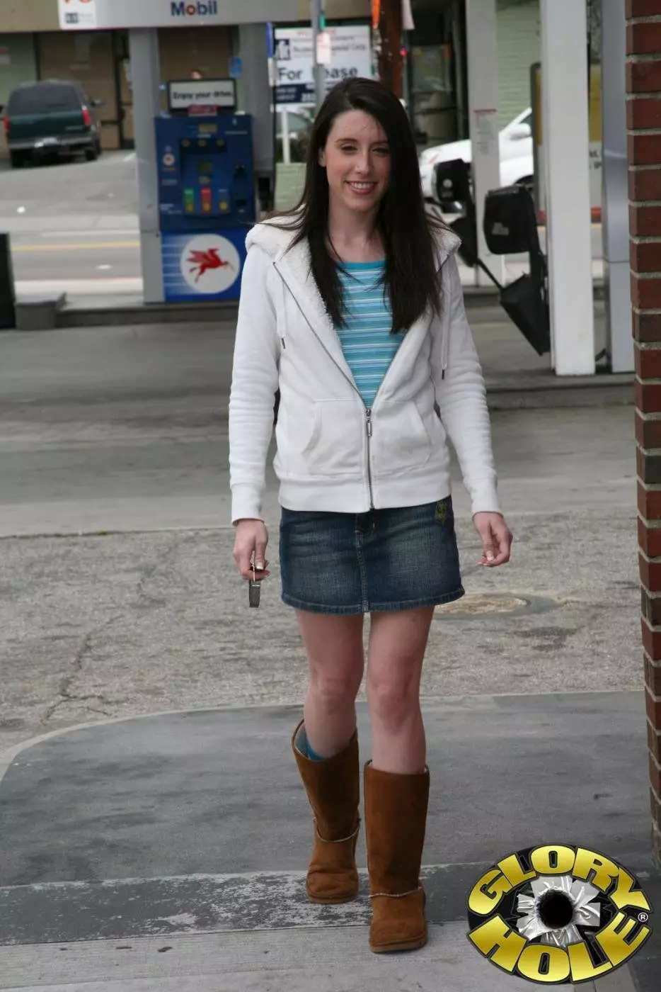 Стройная темноволосая шлюха в сапожках Janie Jones принимает большой темный член в свою узкую дырку через стену — Janie Jones
