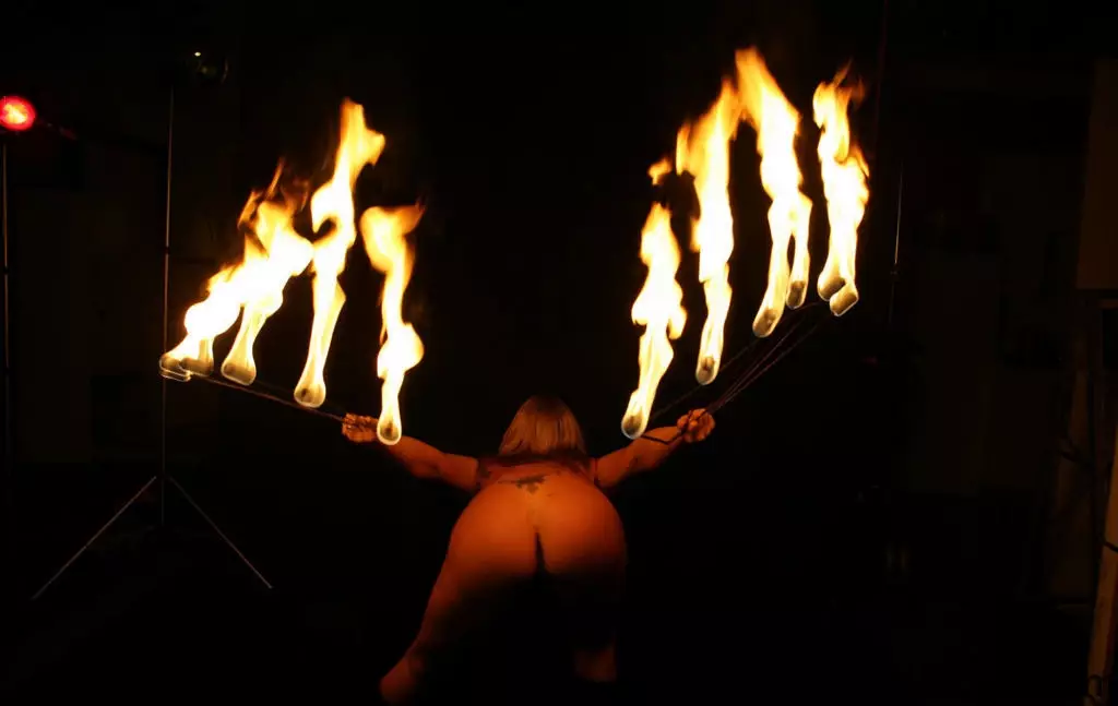 Пышнотелая блондинка Jennifer Steele обнажается чтобы поиграть с огнем в темноте — Jennifer Steele