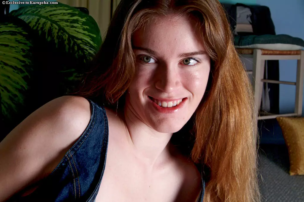 Бледная Jennifer Vale достает свою бритую киску и принимает фиолетовое дилдо — Jennifer Vale
