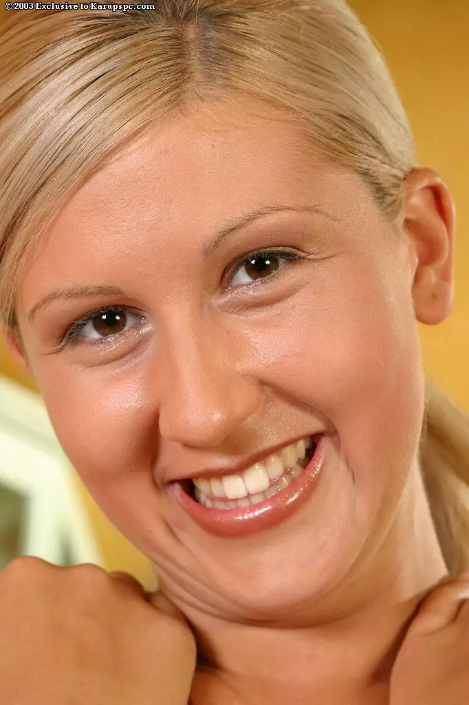 Голая блондинистая красотка Jenny Sanders играет с бритой киской на кухонном столе — Jenny Sanders