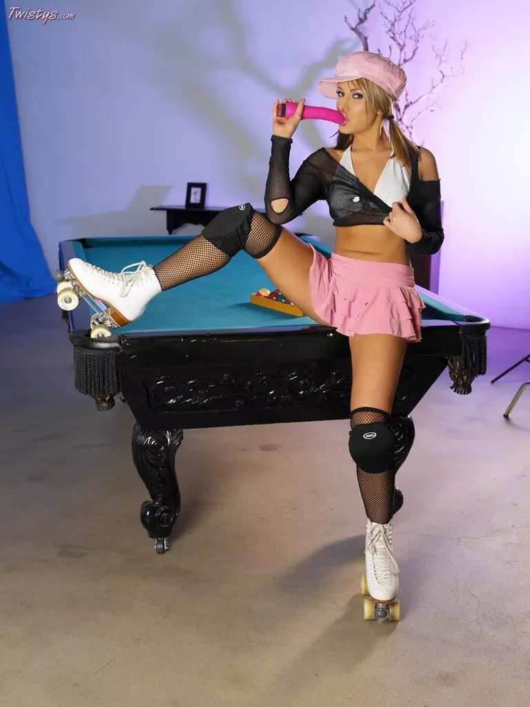 Спортивная Joey Valentine дрочит на бильярдном столе и использует огромное розовое дилдо для своей конченой киски — Joey Valentine