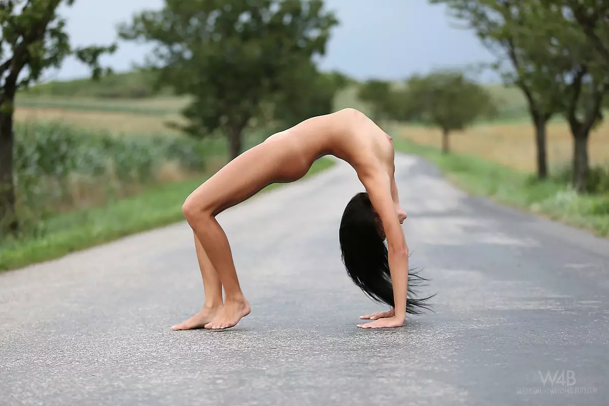 Слишком жгучая брюнетка July Saint позирует на свежем воздухе снимает свое облегающее платье — July Saint