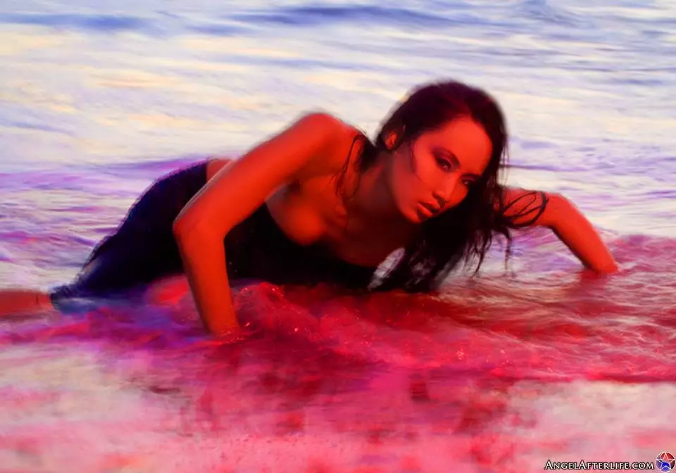 Полуобнаженная азиаточка Kaila Yu и ее голое тело, которое ласкают океанские волны — Kaila Yu