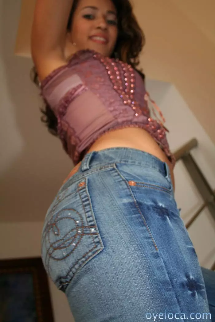 Знойная красотка Karen Salazar в обтягивающих голубых джинсах и белом нижнем белье раздевается догола и трахается — Karen Salazar