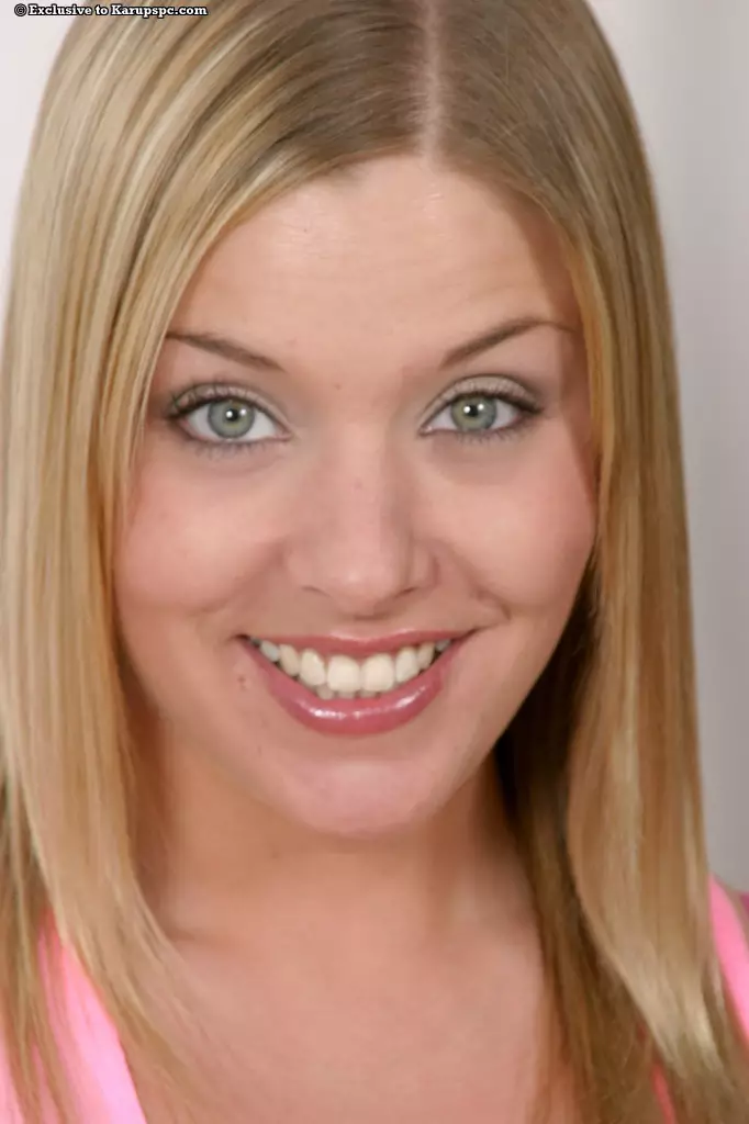 Энергичная детка Karen Wood снимает синие шортики и трусики, а потом показывает розовую, мокрую дырочку — Karen Wood